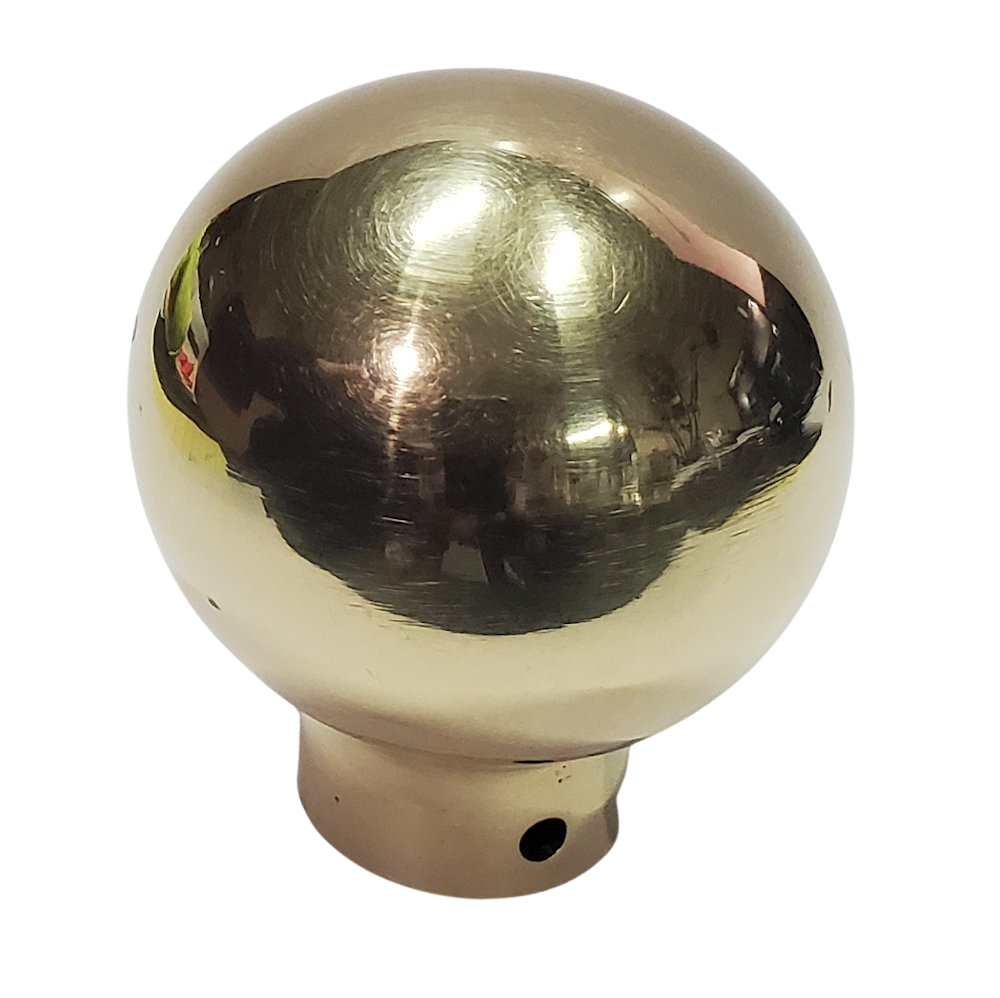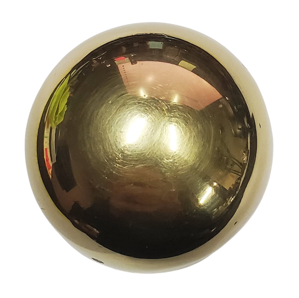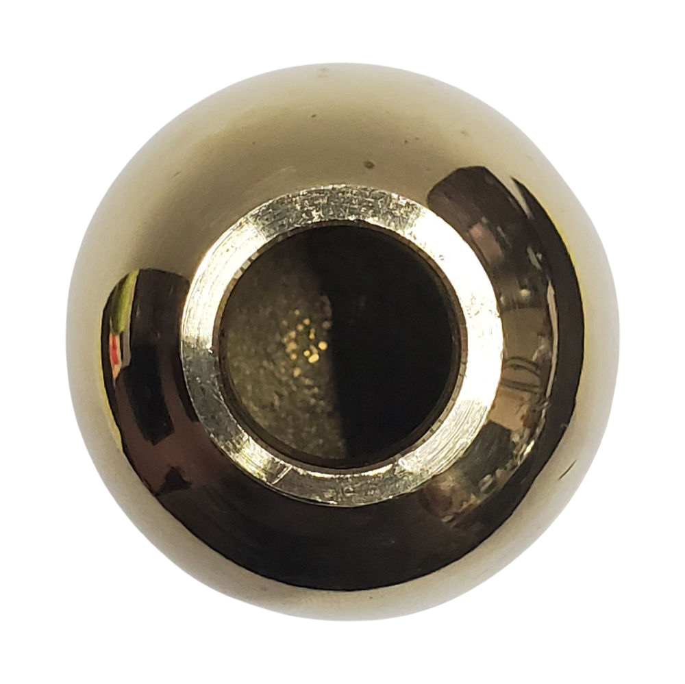 This is a door knob from a time long ago when they made things out of actual brass and not pot metal with hyper-thin plating. The diameter of the ball is 2.07", and the overall height is 2.38". The wall of the ball is .12" (3mm) and is pretty weighty at 7.5 ounces (213 grams). These are the heftiest brass door knobs we've seen to date.