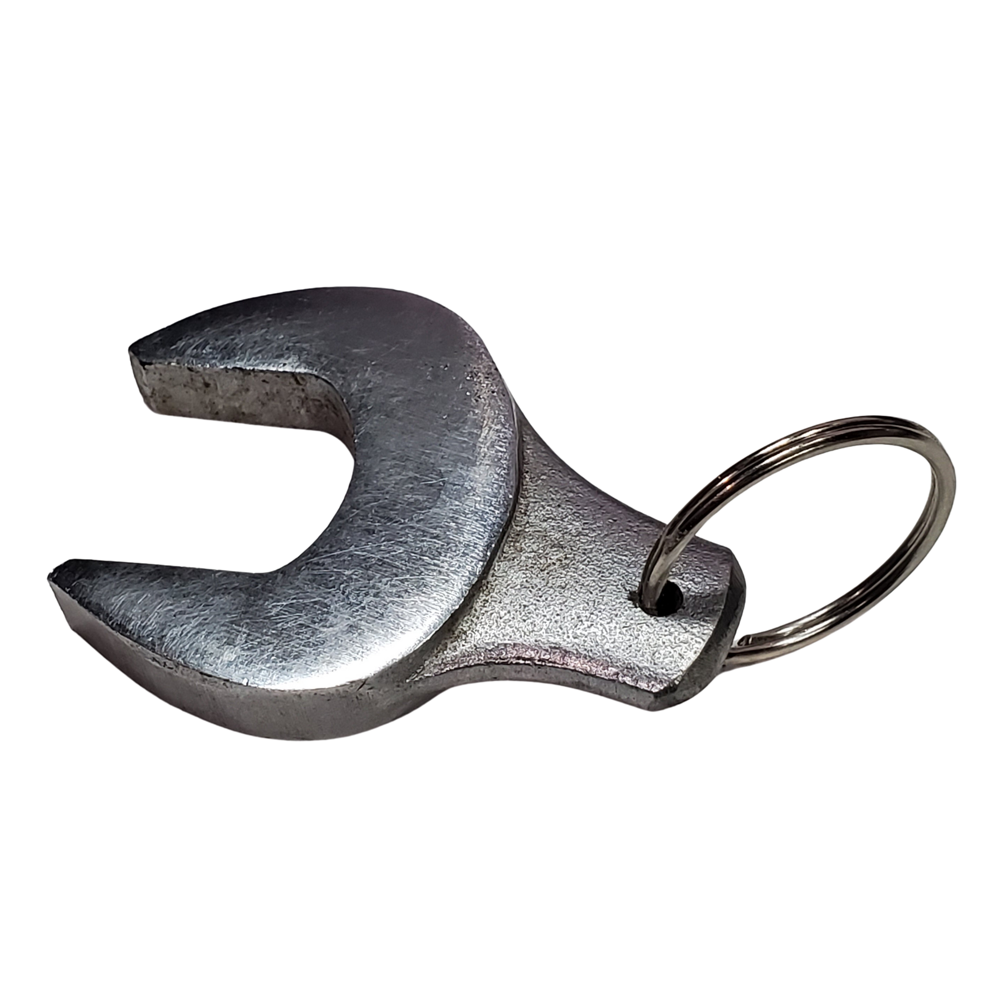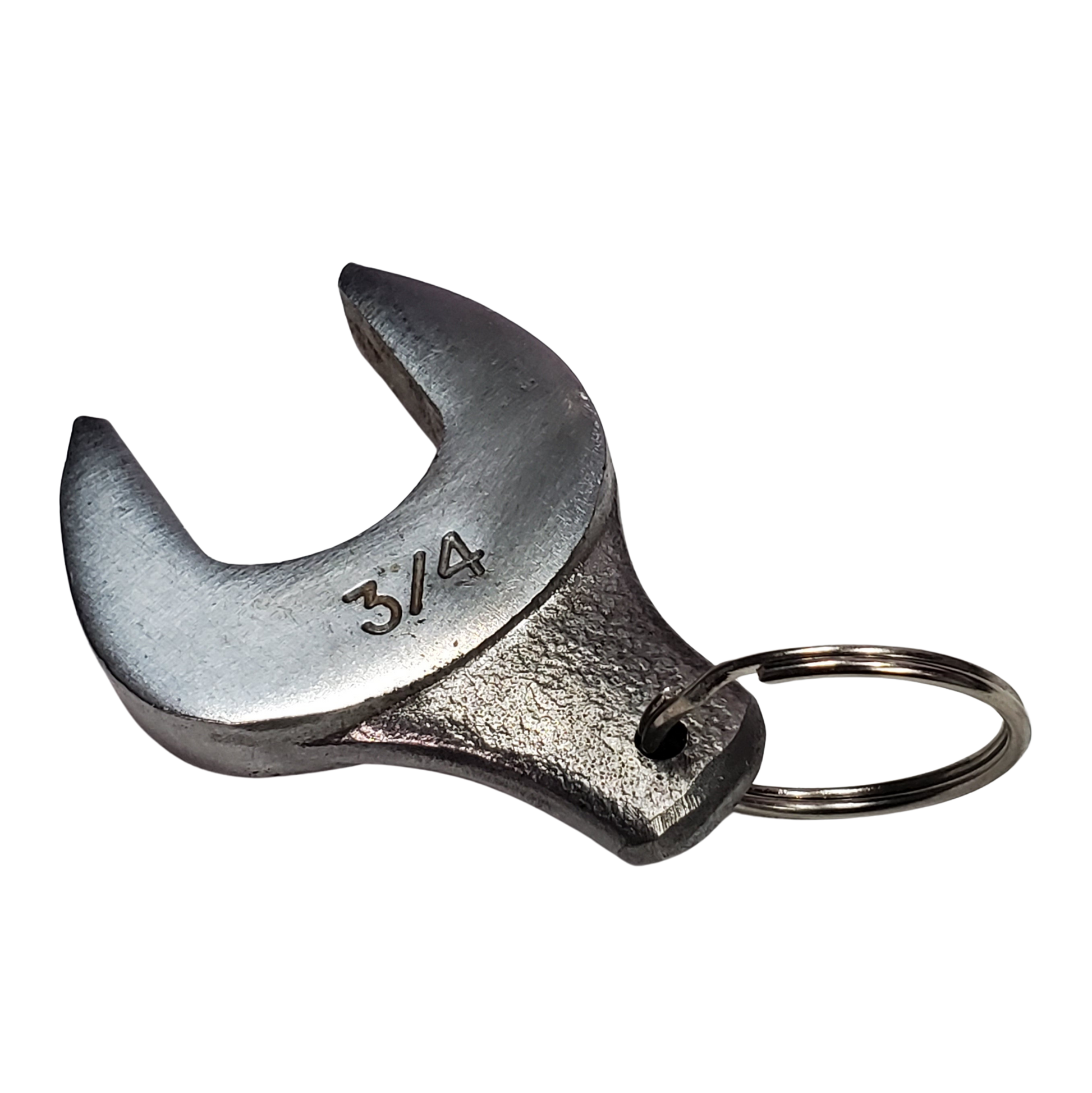 This was cut from a well-used CRAFTSMAN 3/4" x 7/8" Open End Wrench. The original part number for this tool was V-44584. It's a nice, weighty keychain that will last long enough for your kids' kids to use it.