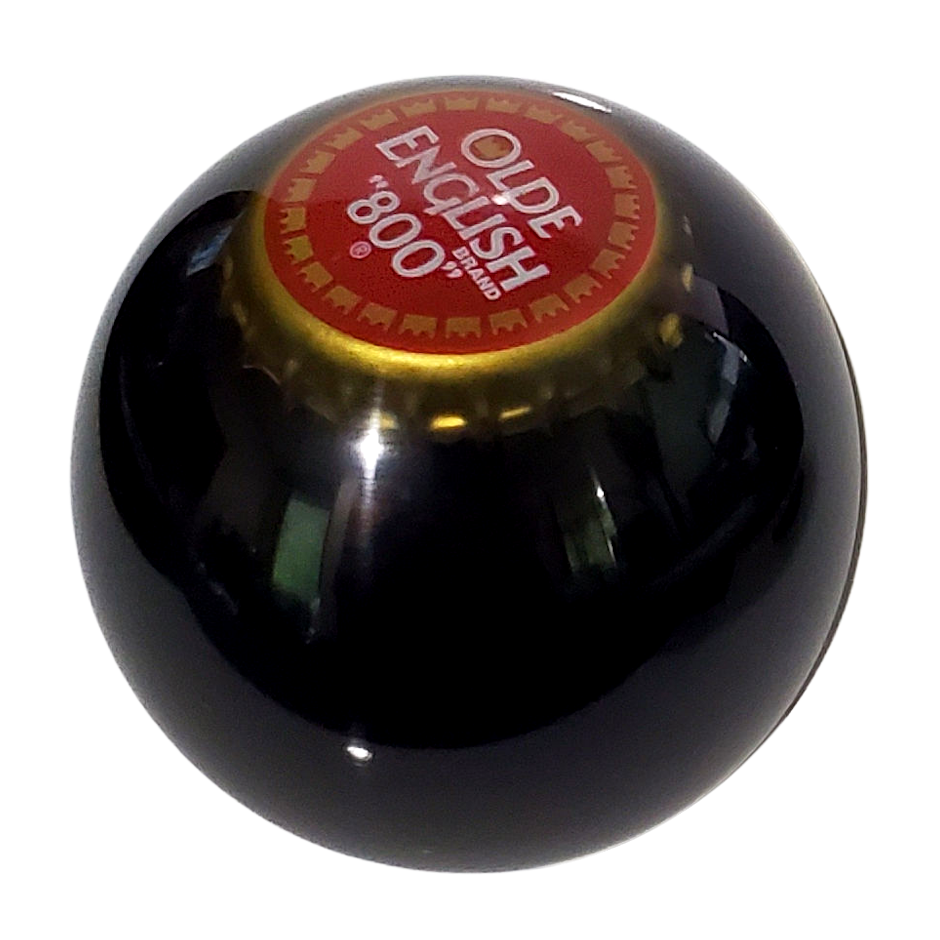 This Olde English "800" Beer Bottle Cap Shift Knob is 2.25 inches in diameter, weighs 4.2 ounces, and is a one-off, 1-of-1 shift knob — no one else will have one like it...