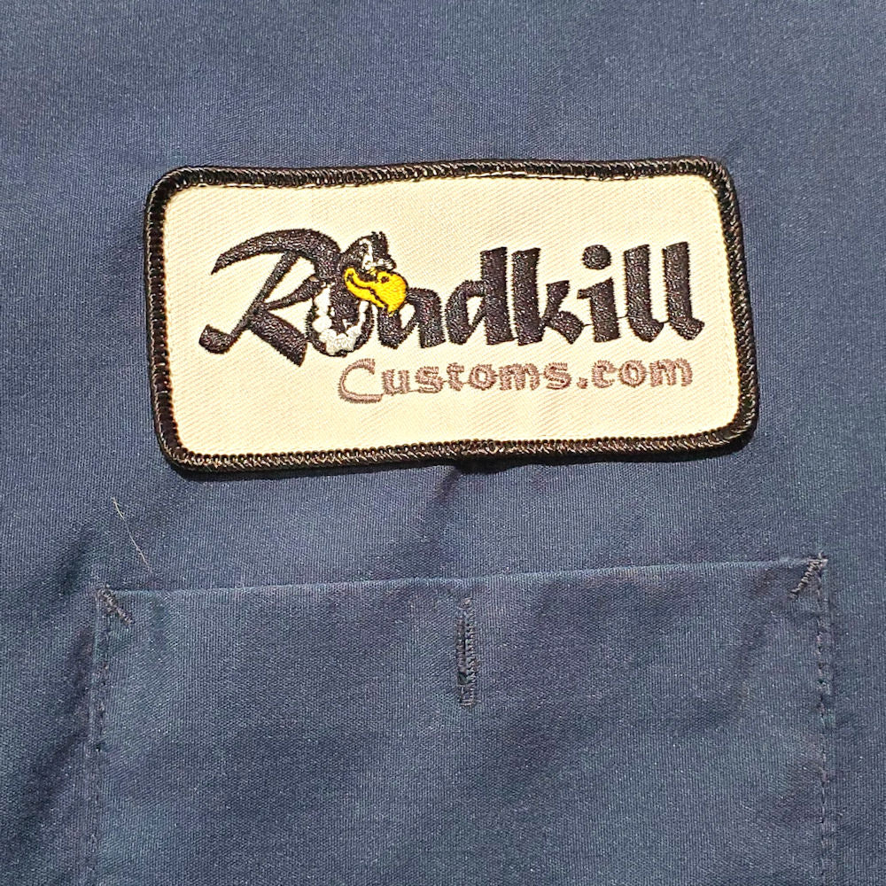 These patches were lost for years behind a workbench in our shop and the envelope they were stored in got wet at least several times. The patches were first made more than 20 years ago in 2003, and they look it — what else would you expect from Roadkill Customs than actual patina patches? The patches are sew-on and measure 2" x 4".