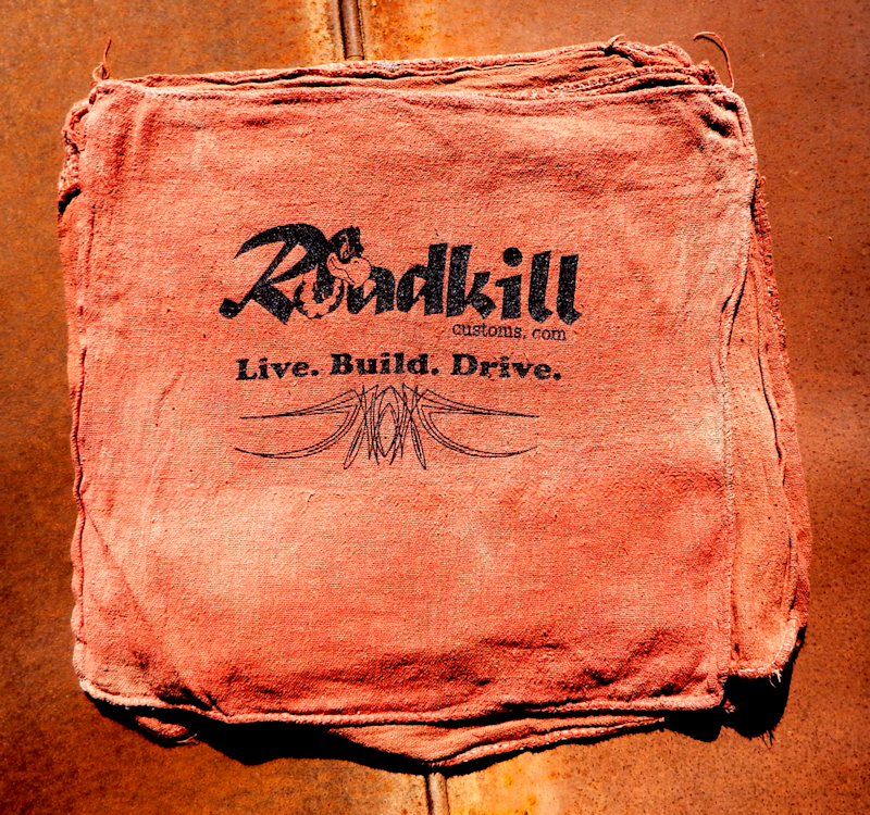 Wipe up your messes with, or tuck one in your back pocket. The shop rags are red with a "Live. Build. Drive." logo in black.