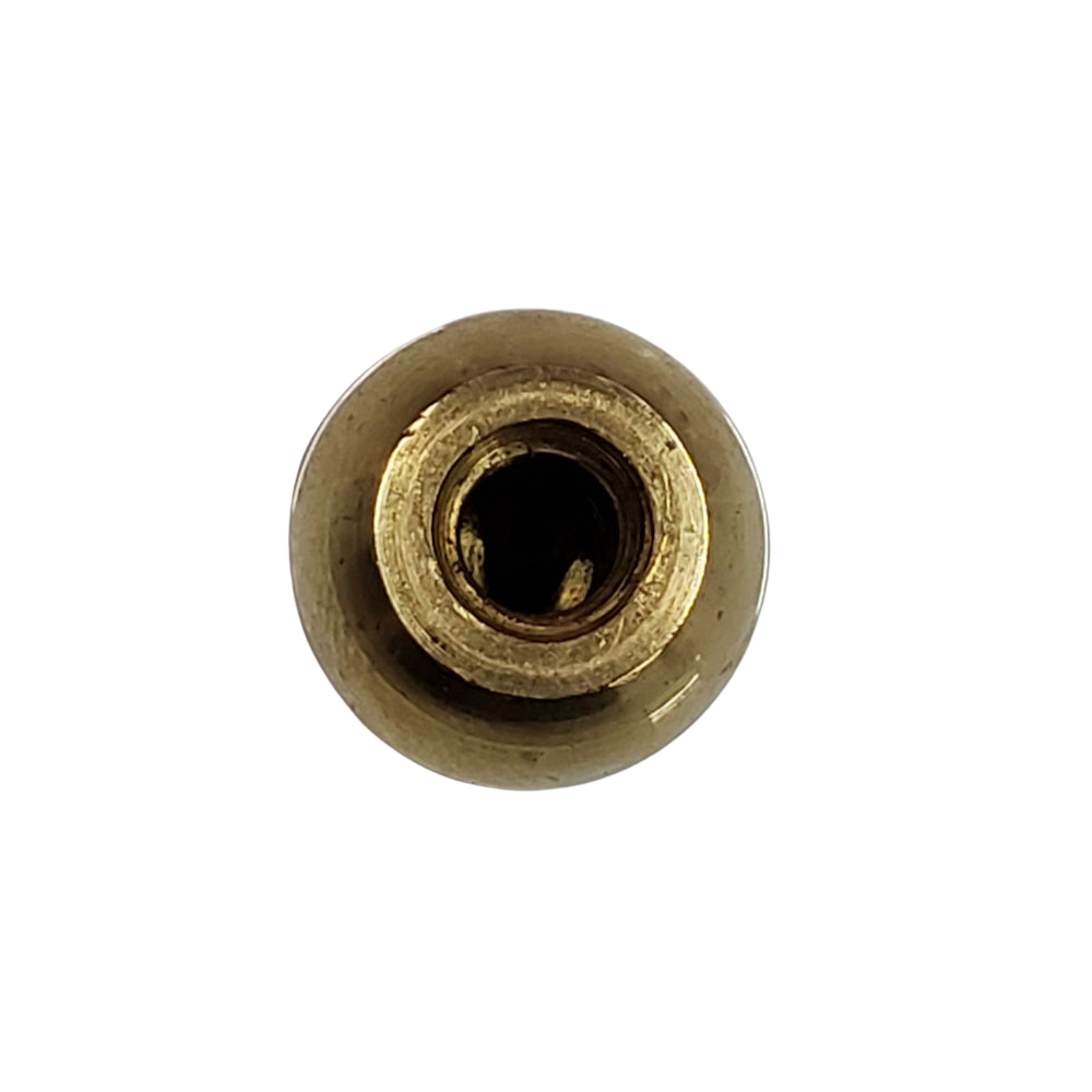 This ball of brass started life as a lampshade nut. The sphere is .62 in diameter and has been drilled and tapped to fit a 1/4"-20 air cleaner stud. Reuse, repurpose, recycle.