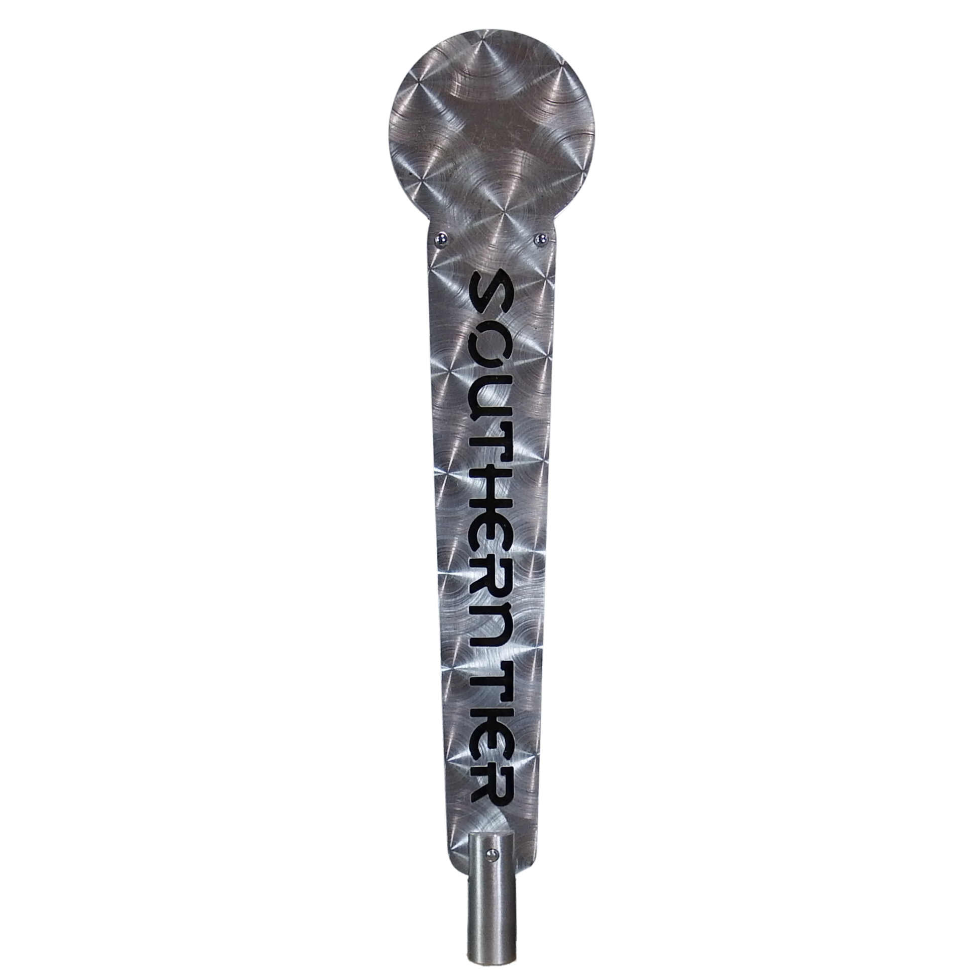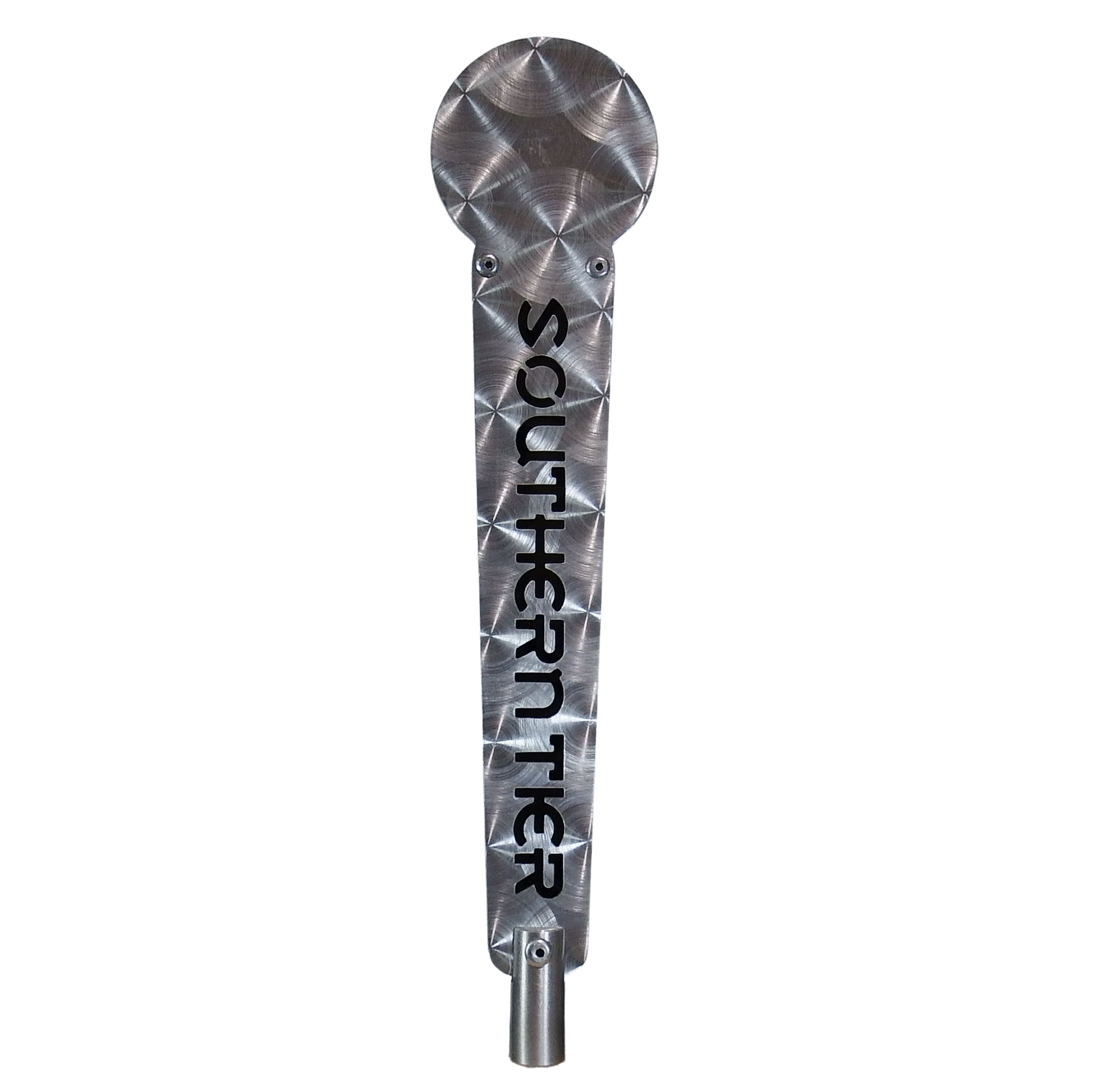 This 14-inch tall Southern Tier Brewing Company Beer Tap Handle is used but in good condition with normal wear including some scratches. The tap handle is aluminum and features an engine-truned surface. Use the handle on your own tap or upgrade it with a Bottle Stopper Kit or Bottle Opener Kit and turn it into a tool!