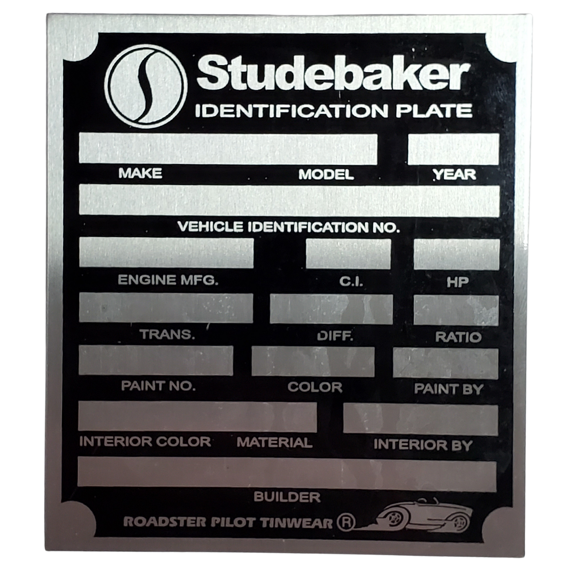 VIN Tag or ID Plate for Studebaker vehicles. Measures Approximately 3-1/2" x 3-7/8"